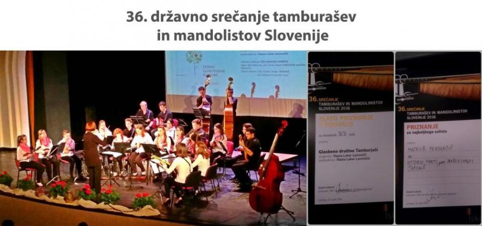 V soboto, 16. aprila 2016 je v Lendavi potekalo 36. državno srečanje tamburašev in mandolinistov Slovenije, katerega smo se udeležili tudi Tamburjaši iz Vipave. Na tekmovalnem delu je skupaj nastopilo osem tamburaških skupin in orkestrov iz Rogatca, Senožeti, Gorišnice, Majšperka, Šmartna, Dragatuša, Tamburaški orkester Petrovi tamburaši in Glasbeno društvo Tamburjaši. Podeljena so bila 3 zlata priznanja s pohvalo, 2 zlati, 1 srebrno ter 2 bronasti priznanji, dodatno pa je žirija podelila še tri posebna priznanja.