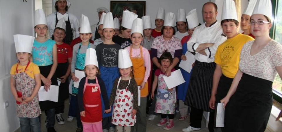 Otroška skupina MALI TAMBURJAŠI je bila 2. maja na Bledu. Pot nas je vodila predvsem z željo po skupnem druženju, srečanju otrok in staršev ter kako se bodo odrezali naši otroci v kuhanju. Ja prav ste slišali, v kuhanju….Otroci so sodelovali v pripravi kosila za starše. Kosilo v hotelu Triglav je bilo za vse nas pravo presenečenje. Bilo je zelo okusno, priprava mize, pogrinjkov in postrežba pa kot se za tak hotel spodobi. Naši otroci so dokazali, da so odlični, ko imajo v roki svoj instrument ali pa navadno kuhalnico.