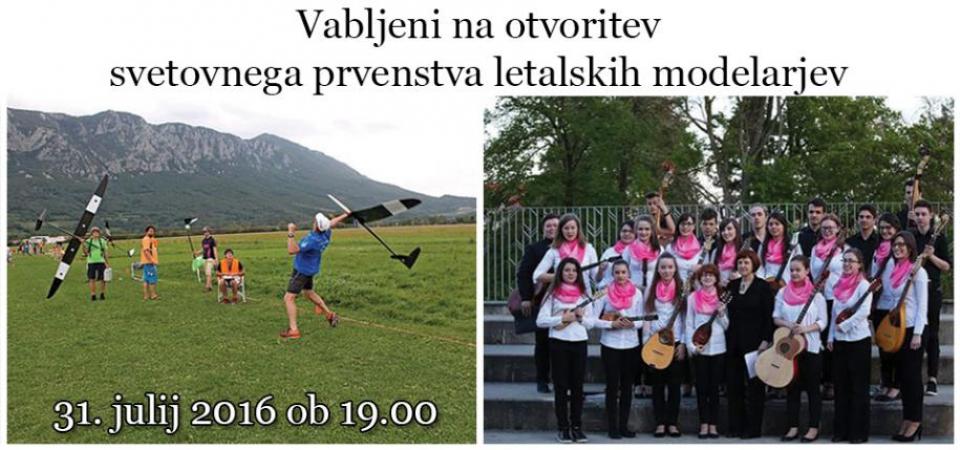V nedeljo, 31. julija 2016, bo manjša skupina Tamburjašev ob 19. uri na dvorišču Lantierjevega dvorca v Vipavi otvorila svetovno prvenstvo letalskih modelarjev v razredu F3J.