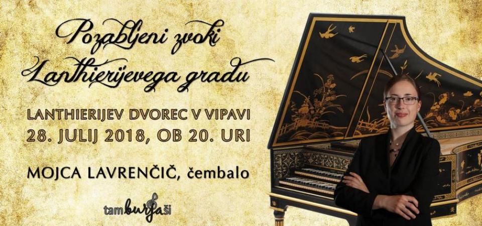 Mlada in perspektivna umetnica Mojca Lavrenčič, prejemnica študentske Prešernove nagrade za koncertno dejavnost, Lavreata in zlatega priznanja na tekmovanju komplementarnega klavirja v Nišu ter srebrnega priznanja na mednarodnem tekmovanju Svirel, je širši javnosti sicer bolj poznana kot orkestrska dirigentka, vendar veliko pozornost namenja tudi interpretiranju stare glasbe na čembalu. Po treh uspešnih solističnih recitalih: na dvorcu Zemono, v Pretorijski palači v Kopru in v Kazinski dvorani v Ljubljani, se ponovno vrača v domačo Vipavo.